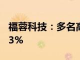 福蓉科技公告,公司多名董事及高级管理人员计划减持股份,减持总数不超过252 17万股,减持比例不超过公司总股本的0 3383%。此次减持计划因 浏览全文>>