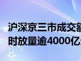 据同花顺iFinD数据,截至目前,沪深京三市成交额突破1万亿元,较上交易日此时放量逾4000亿元,其中沪市成交额4392亿元,深市成交额5579亿元 浏览全文>>