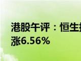 港股午间收盘,恒生指数涨3 41%,恒生科技指数涨6 56%。药明康德涨超20%,蒙牛乳业涨近15%,药明生物、龙湖集团、京东集团、美团涨超10%。 浏览全文>>