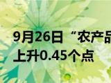 据农业农村部监测,9月26日“农产品批发价格200指数”为135 10,比昨天上升0 45个点,“菜篮子”产品批发价格指数为138 54,比昨天上升0 52 浏览全文>>