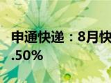 申通快递公告,2024年8月快递服务业务收入为38 73亿元,同比增长21 50%;完成业务量19 36亿票,同比增长27 26%;快递服务单票收入为2 00元 浏览全文>>