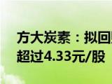 方大炭素公告,公司计划以集中竞价方式回购股份,回购金额不低于5亿元且不超过10亿元,回购价格不超过4 33元 股,主要用于维护公司价值及股 浏览全文>>