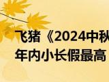 9月17日,飞猪发布《2024中秋假期出游快报》显示,2024年中秋假期旅游预订总量较元旦、清明、端午假期均显著增长,是年内三天假期的最高点 浏览全文>>