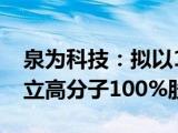 泉为科技公告,公司拟将全资子公司国立高分子100%股权转让给自然人梁龙飞,转让价格为1850万元。本次交易不涉及关联交易,尚需提交股东大会 浏览全文>>