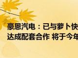 豪恩汽电13日在互动平台表示,公司已与萝卜快跑在自动泊车、超声波雷达等产品上达成配套合作,将于今年量产。文章转载自:互联网,非本站原创浏览全文>>
