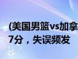 美国男篮vs加拿大男篮直播吧7月11日讯 奥运男篮热身赛,美国队首节以14-21落后加拿大队。首节比赛,美国队合计送出了8个失误。美国男篮vs 浏览全文>>