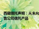 西藏信托发布声明,公司从未授权任何第三方机构或个人在互联网上公开发布公司信托产品信息。从未允许任何非金融机构或个人代理推介销售公司 浏览全文>>
