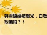 韩雪隐婚被曝光,白敬亭宋轶不公开恋情,明星隐婚隐恋算欺骗吗?韩雪的私人生活近期成为了网络热议的话题,她在社交媒体上突然被曝出已婚并 浏览全文>>
