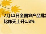 据农业农村部监测,7月11日“农产品批发价格200指数”为116 02,比昨天上升0 22个点,“菜篮子”产品批发价格指数为116 25,比昨天上升0 25 浏览全文>>