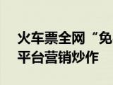 近日,某平台推出火车票全网“免费退”和“专享火车票无忧退”活动。这些做法纯属该平台吸引新会员的营销炒作,误导消费者以为火车票退票免 浏览全文>>