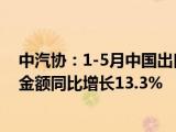 据中国汽车工业协会整理的海关总署数据显示,2024年1-5月,中国出口到“一带一路”国家汽车商品累计金额达到513 2亿美元,同比增长13 3%, 浏览全文>>