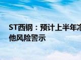 ST西钢公告,预计2024年上半年度实现归属于母公司所有者的净利润约-2 94亿元。同日公告,公司股票触及被实施其他风险警示的情形已消除,且 浏览全文>>