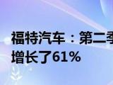 福特汽车:第二季度电动车销量为23,957辆,增长了61%;二季度混合动力车销量为53,822辆,增长了56%;第二季度总汽车销量同比增长1%。文章转 浏览全文>>