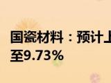 国瓷材料公告,预计上半年净利润为3 3亿元至3 5亿元,同比增长3 46%至9 73%。业绩增长主要由于催化材料及精密陶瓷相关产品销售规模持续增长 浏览全文>>