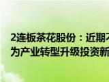 2连板茶花股份发布股票交易异常波动公告,经公司自查,公司目前生产经营活动正常。市场环境、行业政策没有发生重大调整,生产成本和销售等 浏览全文>>