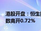 港股开盘,恒生指数高开0 41%,恒生科技指数高开0 72%。理想汽车涨4%,万国数据涨超8%。文章转载自:互联网,非本站原创浏览全文>>