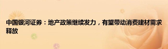 中国银河证券:地产政策继续发力,有望带动消费建材需求释放
