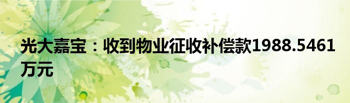 光大嘉宝:收到物业征收补偿款1988.5461万元