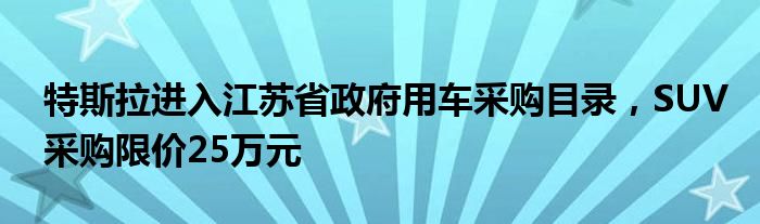 特斯拉进入江苏省政府用车采购目录,SUV采购限价25万元