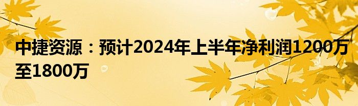 中捷资源:预计2024年上半年净利润1200万至1800万