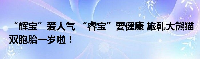 “睿宝”和“辉宝”是旅韩大熊猫“乐宝”和“爱宝”于2023年7月7日诞下的熊猫双胞胎,也是在韩出生的第一只大熊猫“福宝”的妹妹。