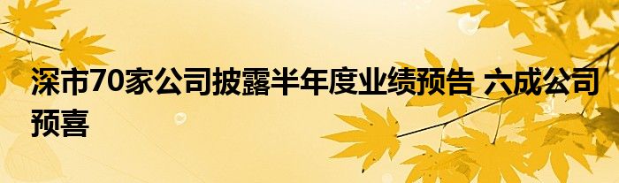 深市70家公司披露半年度业绩预告 六成公司预喜
