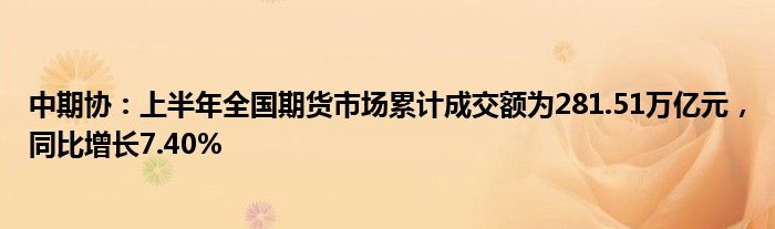 中期协:上半年全国期货市场累计成交额为281.51万亿元,同比增长7.40%