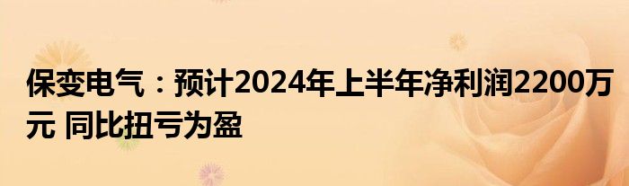 保变电气:预计2024年上半年净利润2200万元 同比扭亏为盈