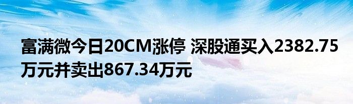 富满微今日20CM涨停 深股通买入2382.75万元并卖出867.34万元