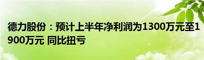 德力股份:预计上半年净利润为1300万元至1900万元 同比扭亏