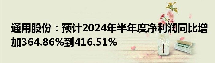 通用股份:预计2024年半年度净利润同比增加364.86%到416.51%