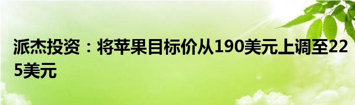 派杰投资:将苹果目标价从190美元上调至225美元,维持中性评级。