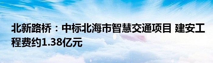 北新路桥:中标北海市智慧交通项目 建安工程费约1.38亿元