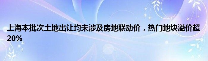上海本批次土地出让均未涉及房地联动价,热门地块溢价超20%