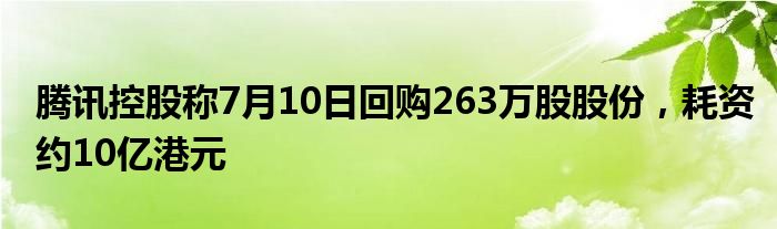 腾讯控股称7月10日回购263万股股份,耗资约10亿港元