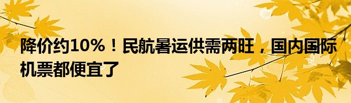 降价约10%!民航暑运供需两旺,国内国际机票都便宜了