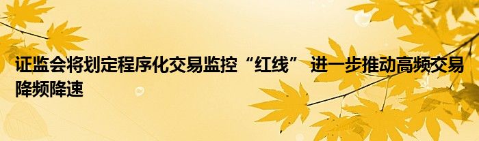 证监会将划定程序化交易监控“红线” 进一步推动高频交易降频降速