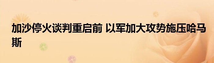 加沙停火谈判重启前 以军加大攻势施压哈马斯