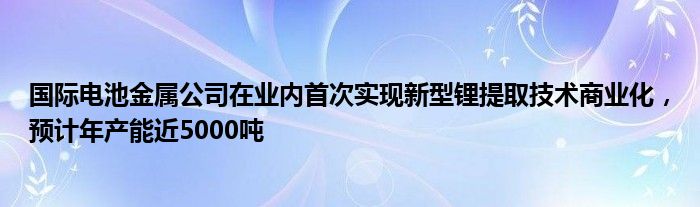 国际电池金属公司在业内首次实现新型锂提取技术商业化,预计年产能近5000吨
