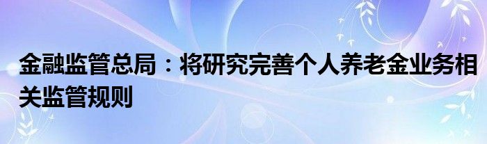 金融监管总局:将研究完善个人养老金业务相关监管规则