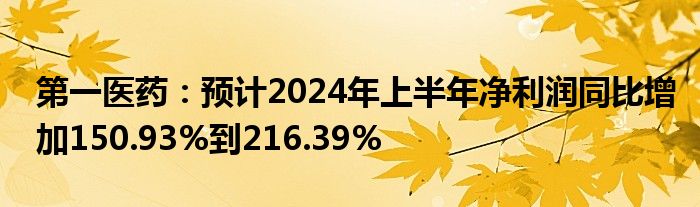 第一医药:预计2024年上半年净利润同比增加150.93%到216.39%
