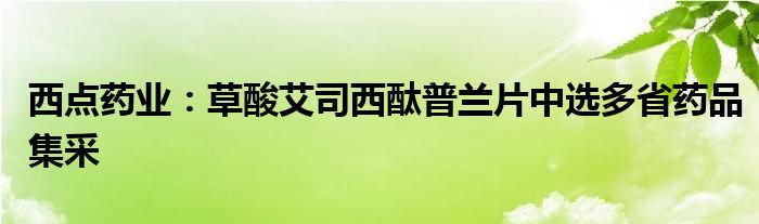 西点药业:草酸艾司西酞普兰片中选多省药品集采