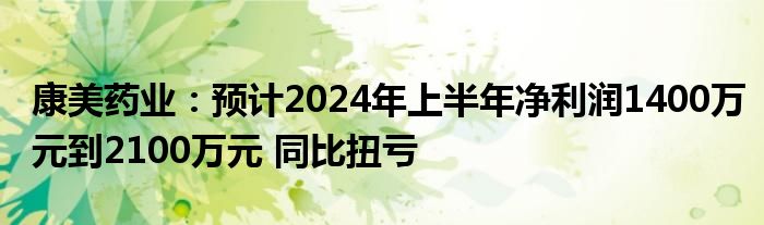 康美药业:预计2024年上半年净利润1400万元到2100万元 同比扭亏