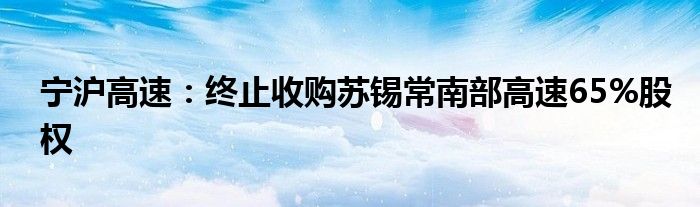 宁沪高速:终止收购苏锡常南部高速65%股权
