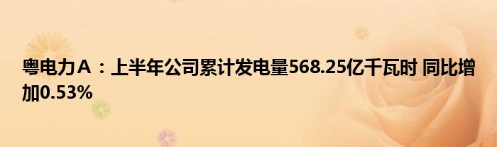 粤电力A:上半年公司累计发电量568.25亿千瓦时 同比增加0.53%