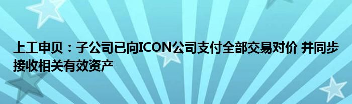 上工申贝:子公司已向ICON公司支付全部交易对价 并同步接收相关有效资产