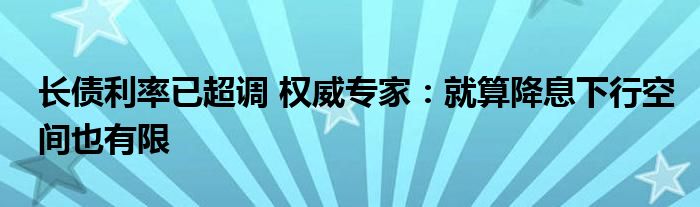 长债利率已超调 权威专家:就算降息下行空间也有限