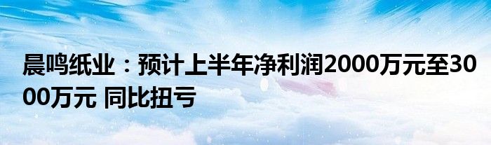 晨鸣纸业:预计上半年净利润2000万元至3000万元 同比扭亏