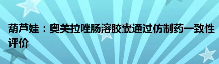 葫芦娃:奥美拉唑肠溶胶囊通过仿制药一致性评价