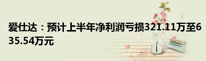 爱仕达:预计上半年净利润亏损321.11万至635.54万元